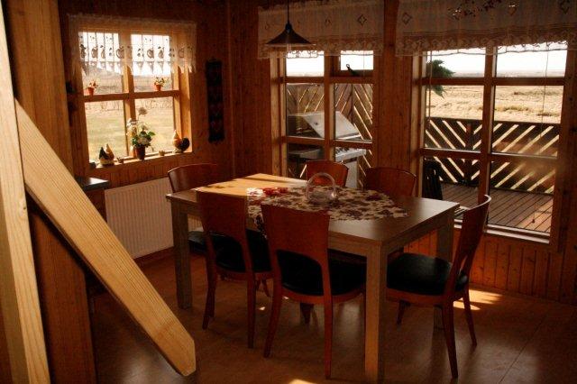 Húsin eru 54m² með 26m² svefnlofti. Þau skiptist í tvö svefnherbergi annað með hjónarúmi og hitt kojum. Auk þess er svefnloft með dýnum. Niðri er stofa, eldhús með borðkróki og baðherbergi með sturtu. Svefnpláss, sængur og koddar eru fyrir 8. Bústaðurinn er með interneti gegn gjaldi. Ekki er séð fyrir sængurverum. Við bústaðinn er heitur pottur og stór verönd með húsgögnum og gasgrilli.